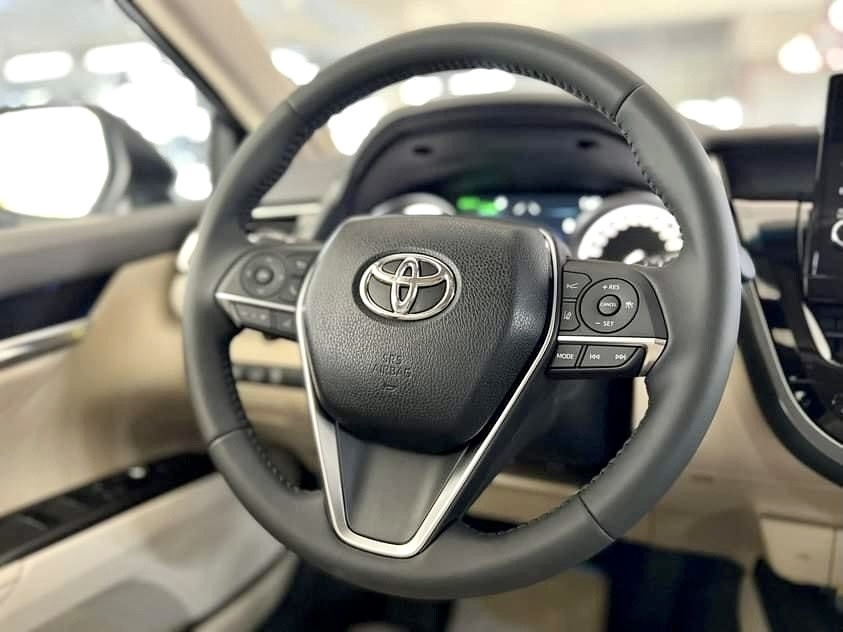 Toyota Camry 2.5HEV sử dụng vô lăng đa chức năng 3 chấu bọc da, có thể chỉnh điện 4 hướng kèm bộ nhớ 2 vị trí. Đi kèm còn có 2 lẫy chuyển số mang đến cảm giác lái thú vị hơn.